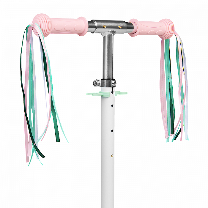 - má protišmykové rukoväte riadidiel zdobené odnímateľnými farebnými strapcami