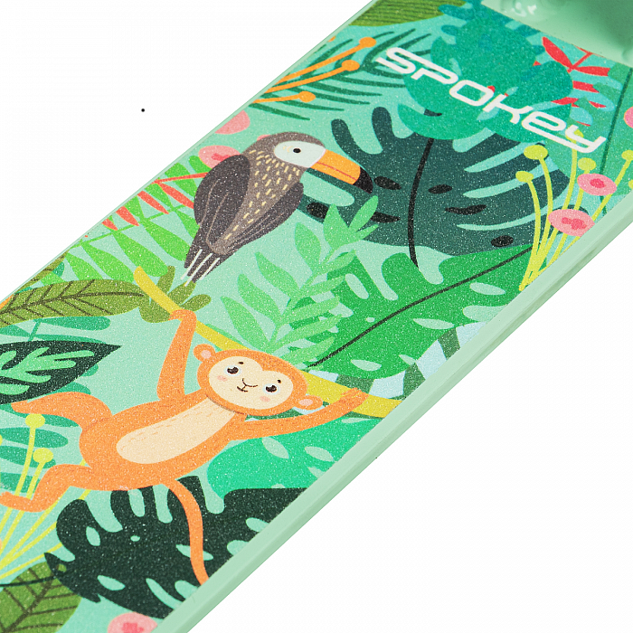 Detská kolobežka Spokey DUKE s polyuretánovými kolieskami o tvrdosti 82A a veľkosti 125 mm a odolnými ložiskami ABEC5 zaisťuje plynulú jazdu, ľahkú ovládateľnosť a kontrolu pri zatáčaní. Okrem toho výborne tlmí vibrácie vznikajúce pri pohybe po nerovnom povrchu. Nožná brzda umožňuje jednoducho prispôsobiť rýchlosť jazdy aktuálnym podmienkam. Pre úplné pohodlie je detská kolobežka DUKE vybavená protišmykovými rukoväťami, ktoré zdobia odnímateľné farebné strapce.