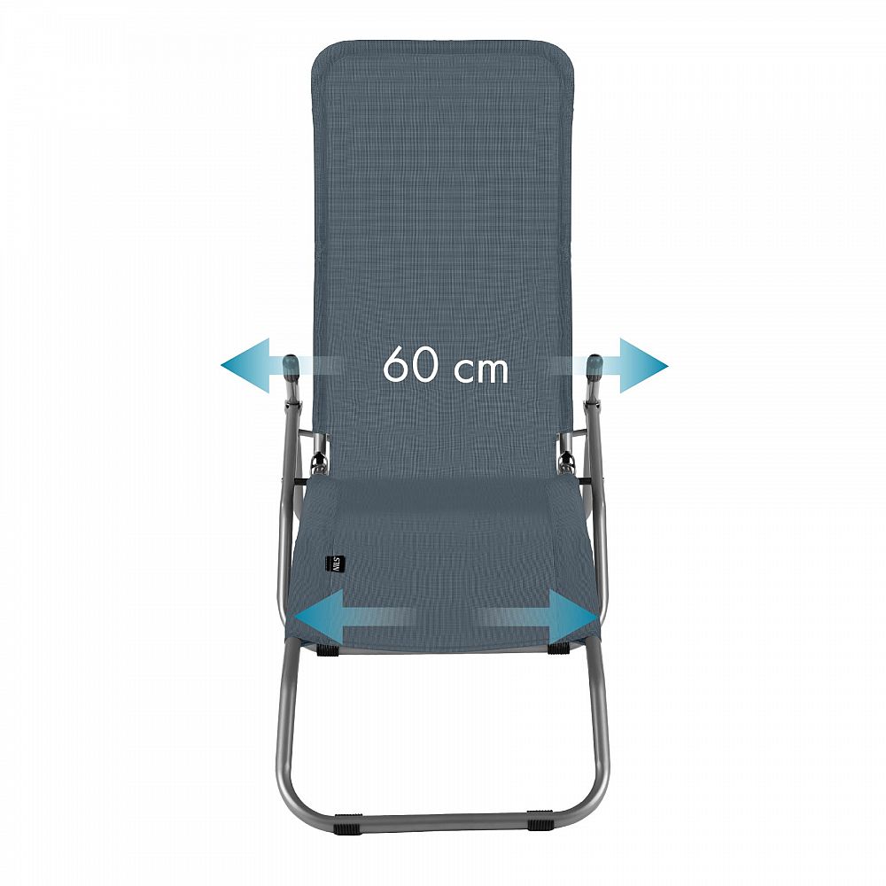 Jedná sa o univerzálne lehátko, ktoré sa osvedčí za každých podmienok. Za jeho stabilitu ručia oceľové profily s priemerom 24 mm. Vďaka pevnej konštrukcii a materiálu textilen (polyesterové vlákno potiahnuté vinylom), ktorý je veľmi odolný, je maximálna nosnosť lehátka až 100 kg. Súčasťou sú aj protišmykové nôžky, ktoré zabraňujú posúvaniu.