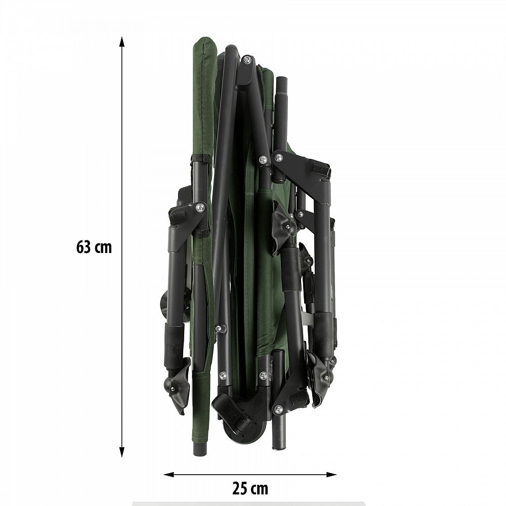 Rám z robustných oceľových profilov s priemerom 25 mm zaisťuje stabilitu a pevnosť až do 180 kg. Rybári môžu tomuto kreslu plne dôverovať, pretože vedia, že bez ohľadu na podmienky alebo intenzitu používania bude kreslo verne slúžiť po mnoho sezón. Za zmienku stojí tiež to, že oceľové profily boli opatrené práškovou farbou, ktorá výrobok ďalej chráni pred poškriabaním alebo koróziou. Okrem toho je vďaka ľahkému zloženiu NC1801 do kompaktných rozmerov je jeho preprava a skladovanie veľmi jednoduché, čo je dôležité najmä pri cestovaní.