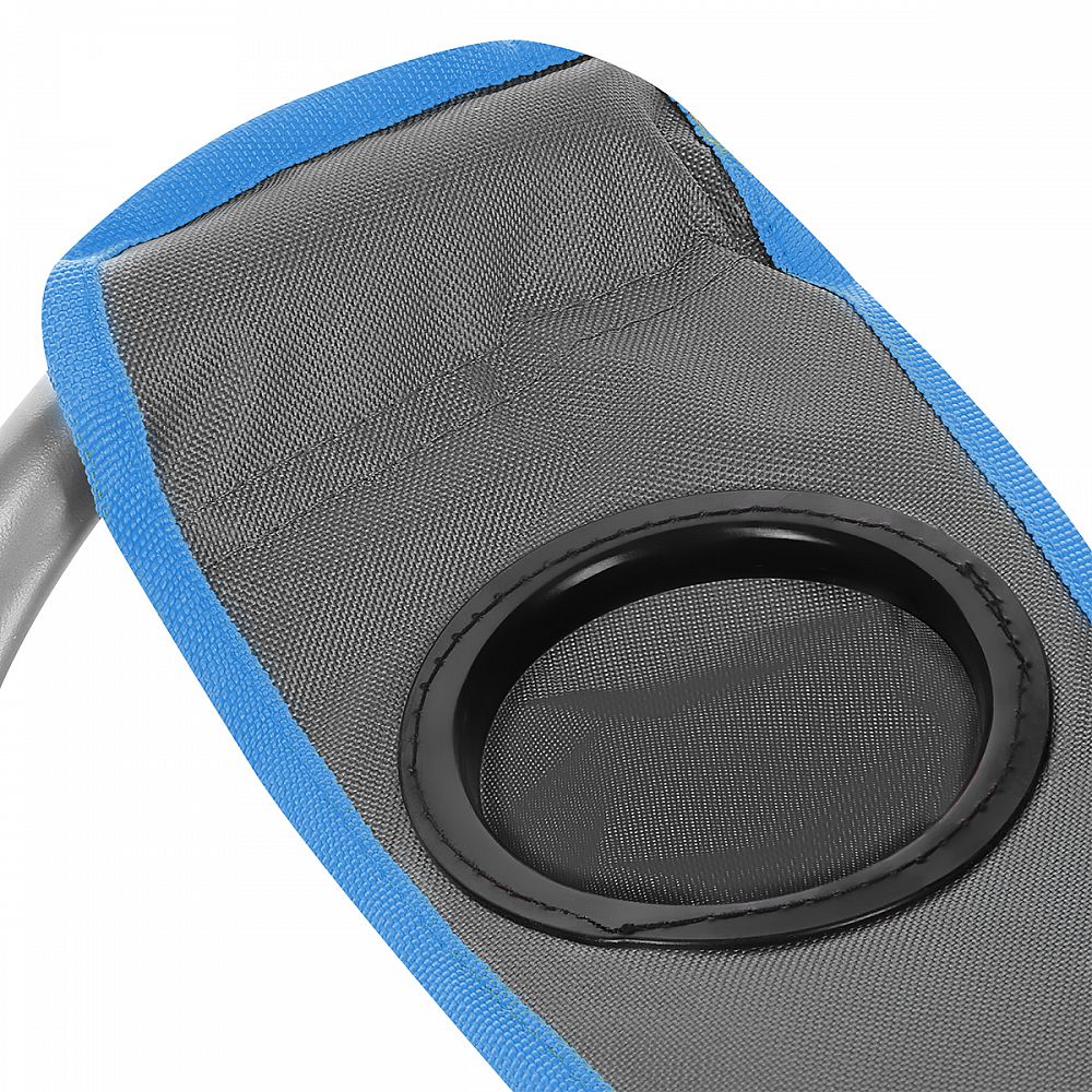Lakťové opierky majú možnosť regulácie výšky jednoduchým posunom zadnej časti po profile konštrukcie. Pravá opierka lakťa je opatrená košíkom, do ktorého sa pohodlne zmestí menšia fľaša, alebo vysoký pohár. Pre ľahké prenášanie je možné kreslo zložiť do dodávaného vaku s popruhom cez rameno.
