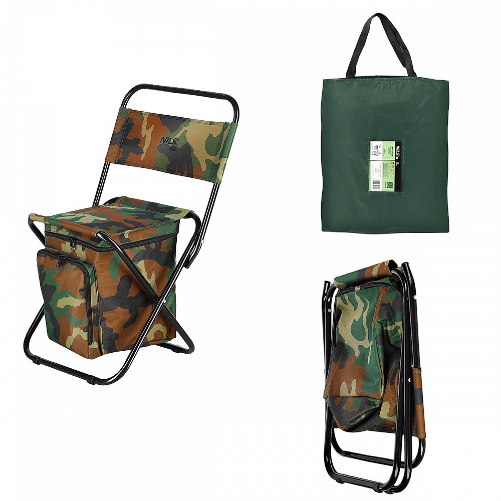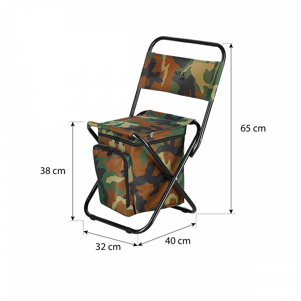 Popis: Skladacia stolička s úložným priestorom NILS Camp NC3012 maskáčová