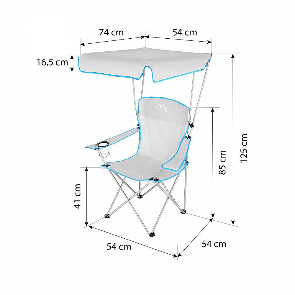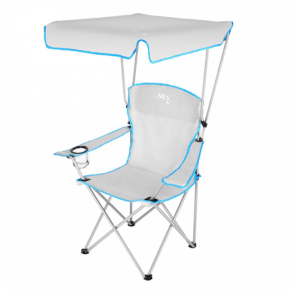 Skladacia, kempingová stolička so strieškou NILS Camp NC3087 je ideálna k vode, na ryby, na festival, alebo napríklad na dovolenku pod stan. Zložiteľná strieška ochráni pred slnečnými lúčmi alebo drobnou prehánkou.