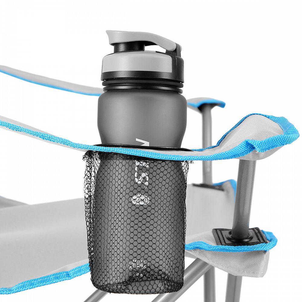 Lakťové opierky majú možnosť regulácie výšky jednoduchým posunom zadnej časti po profile konštrukcie. Pravá opierka lakťa je opatrená košíkom, do ktorého sa pohodlne zmestí menšia fľaša, alebo vysoký pohár. Pre ľahké prenášanie je možné stoličku zložiť.