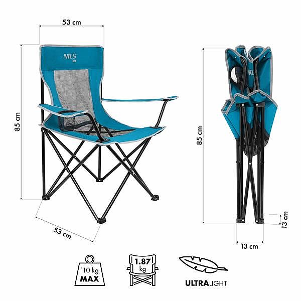 Popis: Turistické kreslo NILS Camp NC3302 modré/šedé