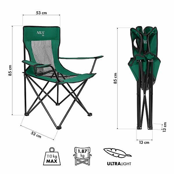 Popis: Turistické kreslo NILS Camp NC3302 zelené/čierne