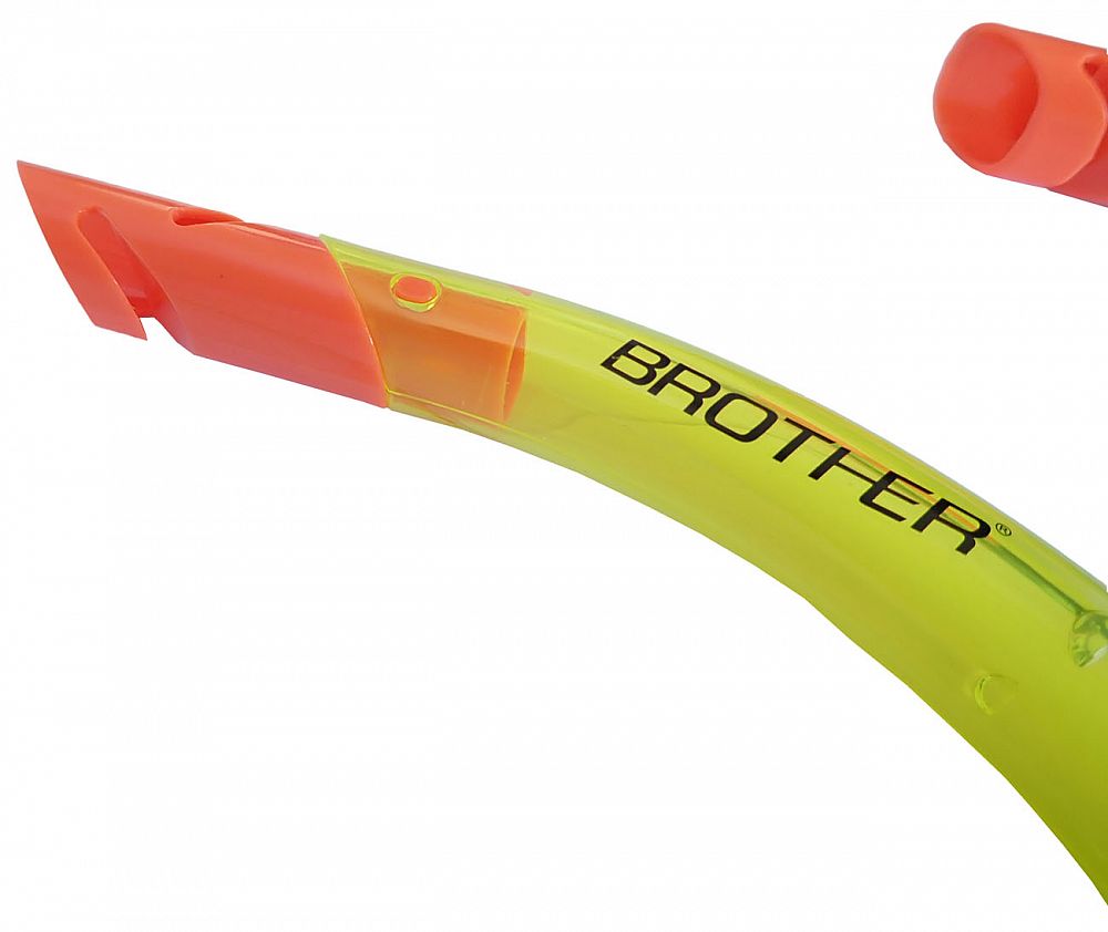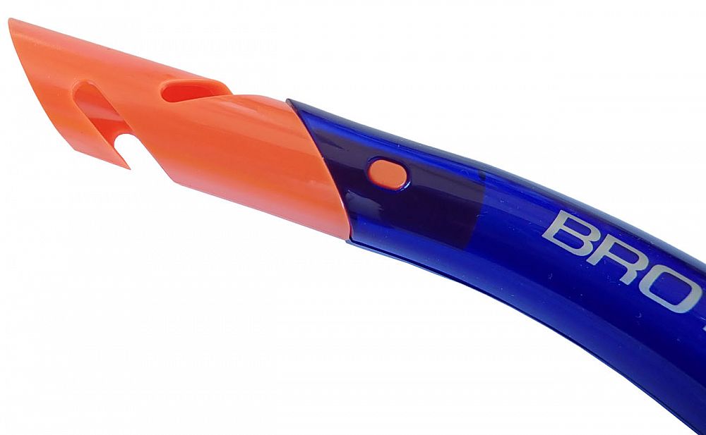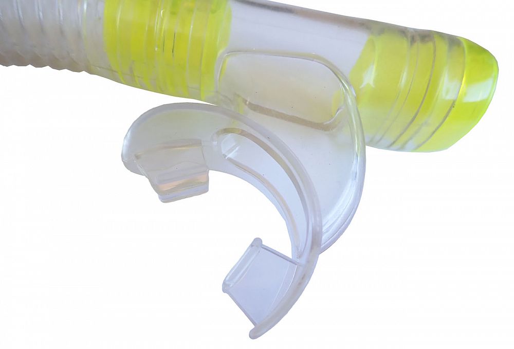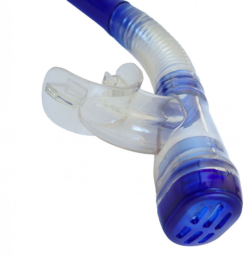 Šnorchel s vyfukovacím ventilom a krytkou proti vode - balenie blister, s vrchnou krytkou proti vode a výfukom. Materiál - silikón + polyetylén. K dispozícii vo farebných variantoch - modrá, žltá. Farbu je nutné špecifikovať v poznámke objednávky.