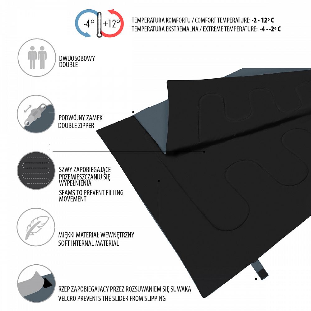 Popis: Dvojosobový spací vak NILS Camp NC2001 sivý