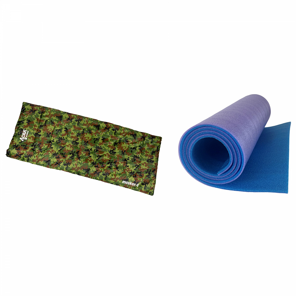 Súprava obsahuje letný spacák Acra Masker-T a dvojvrstvovú karimatku s hrúbkou 8 mm z IFO peny – odľahčená.