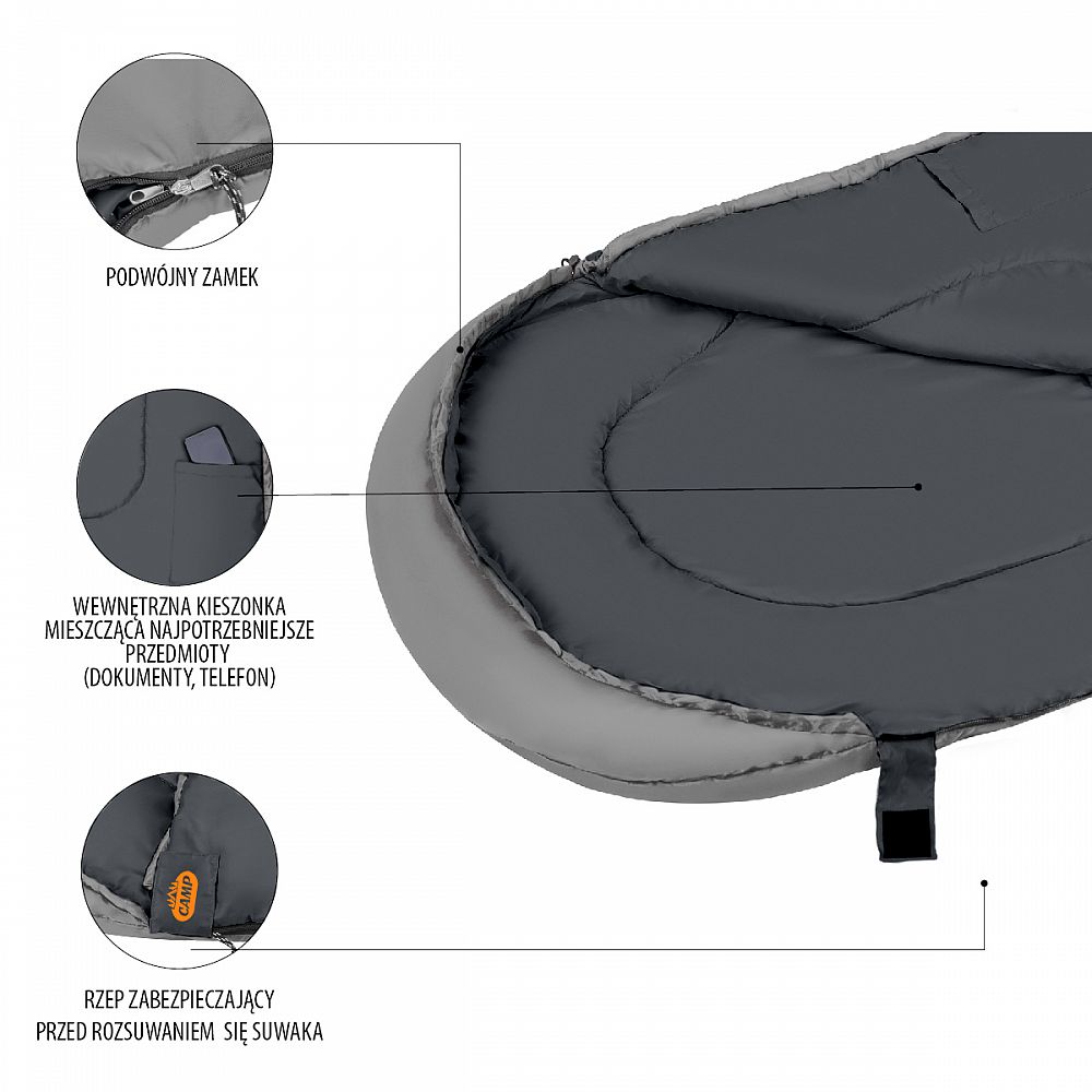 Popis: Predĺžený spací vak NILS Camp NC2008 antracit/oranžový
