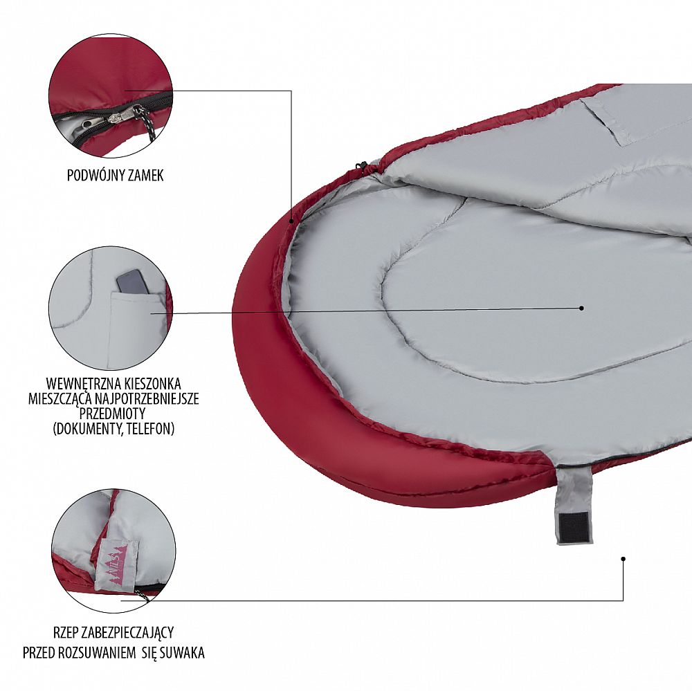 Popis: Predĺžený spací vak NILS Camp NC2008 bordó/sivý