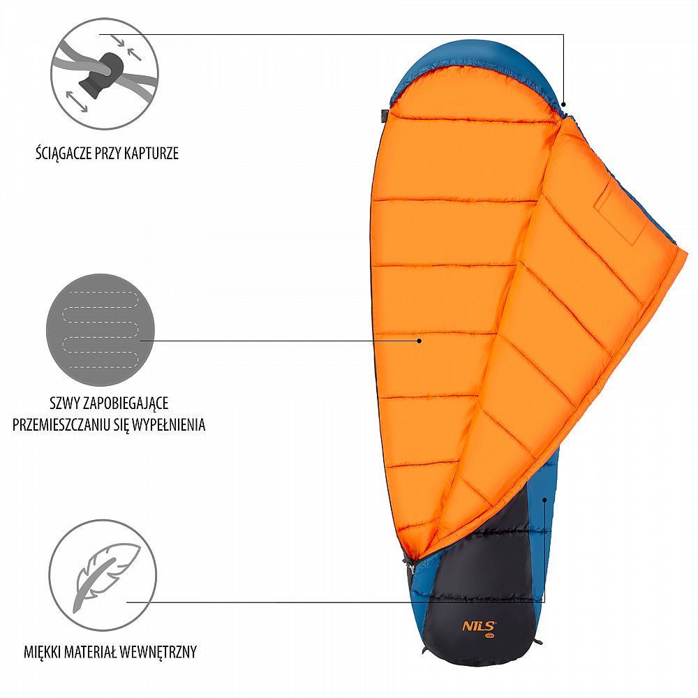 Spací vak, typu anatomická múmia, NILS Camp NC2012 využijete počas chladných nocí pri kempovaní, spaní pod holým nebom alebo len pri stanovaní na záhrade.