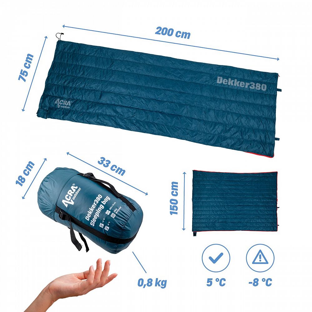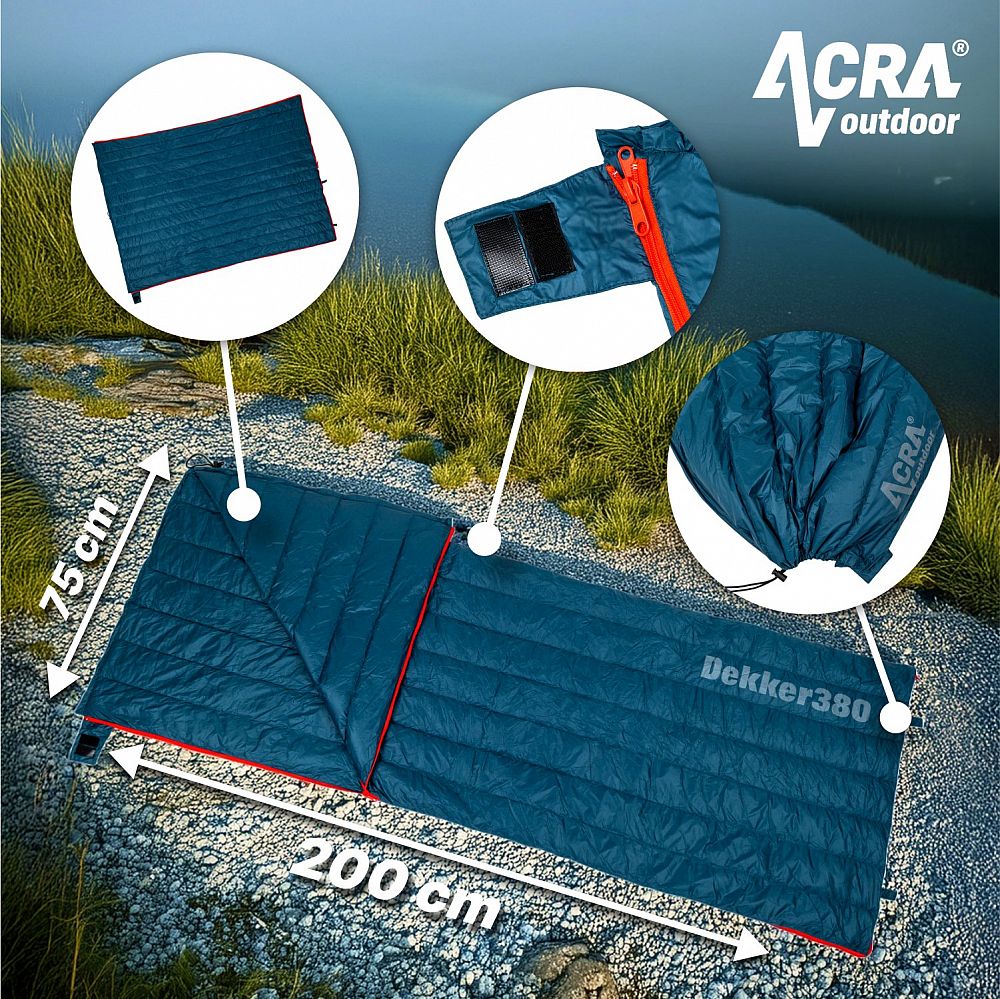 Už žiadne kompromisy medzi spacákom a dekou v obmedzenom priestore stanu či karavanu! S ACRA Dekker380 získate geniálne 2v1 riešenie, ktoré premení každú vašu noc v prírode na luxusný zážitok, či už ste v kempe, v obytnom vozidle alebo pod širákom. Tento inovatívny páperový spací vak je navrhnutý pre maximálnu flexibilitu a pohodlie.