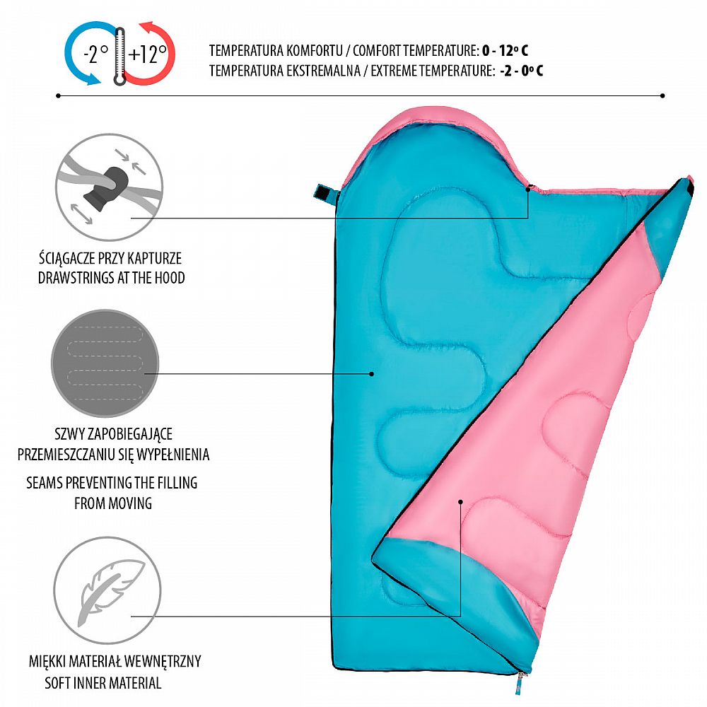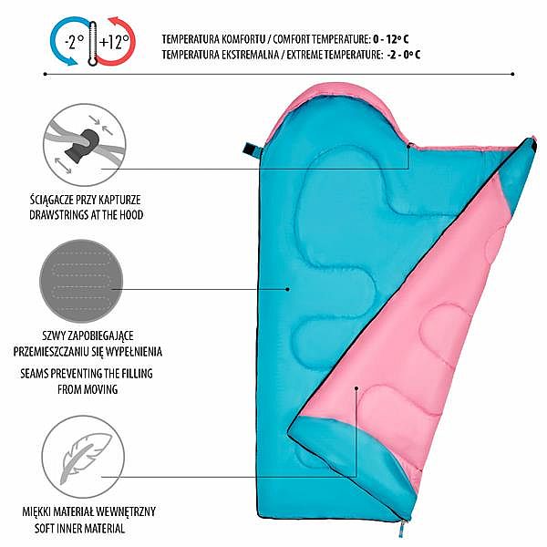 Spací vak NILS Camp NC2007 Junior je ideálnou voľbou pre všetkých mladých turistov, ktorí sa počas kempovania chcú vyspať pohodlne av teple. Tento model bol navrhnutý pre deti. Bude ideálna pre výlety pod stan, tábory, prenocovanie v prírode alebo rodinné kempovanie.