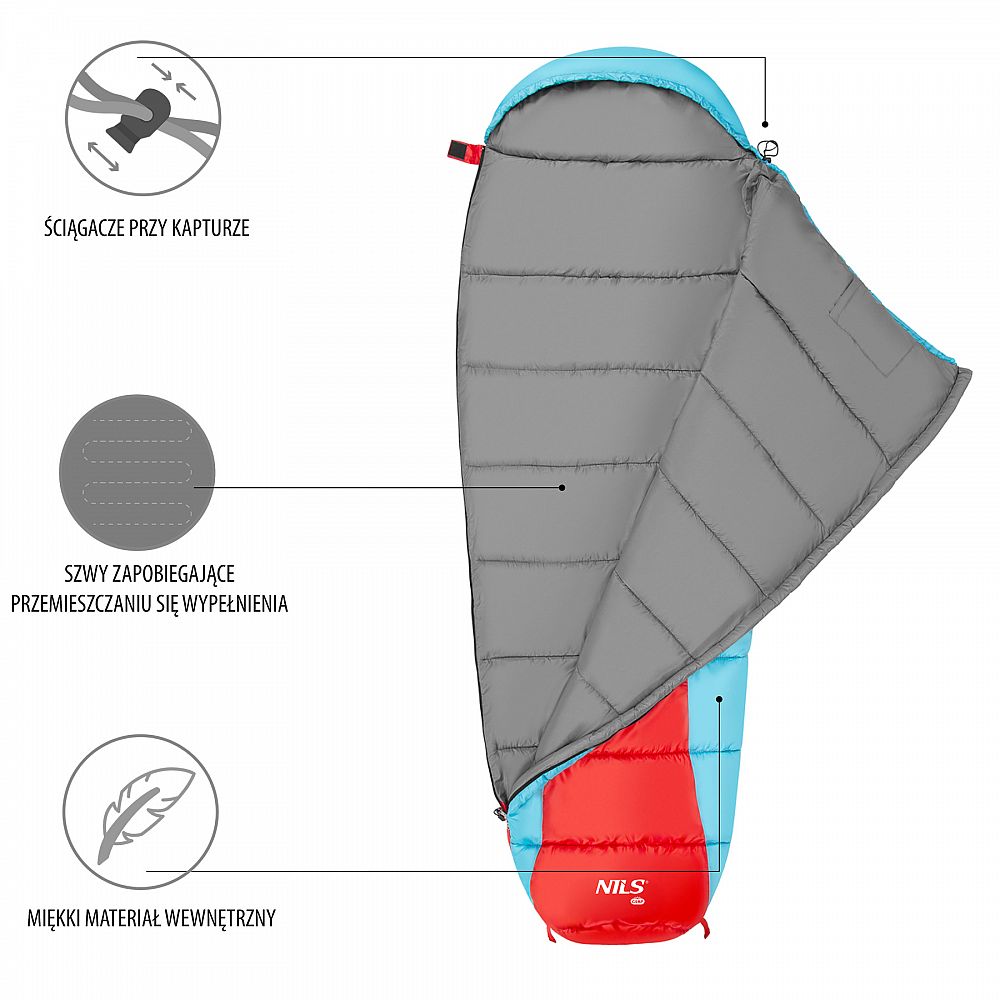 Spací vak, typu múmie, NILS Camp NC2012 využijete počas chladných nocí pri kempovaní, spaní pod holým nebom alebo len pri stanovaní na záhrade.