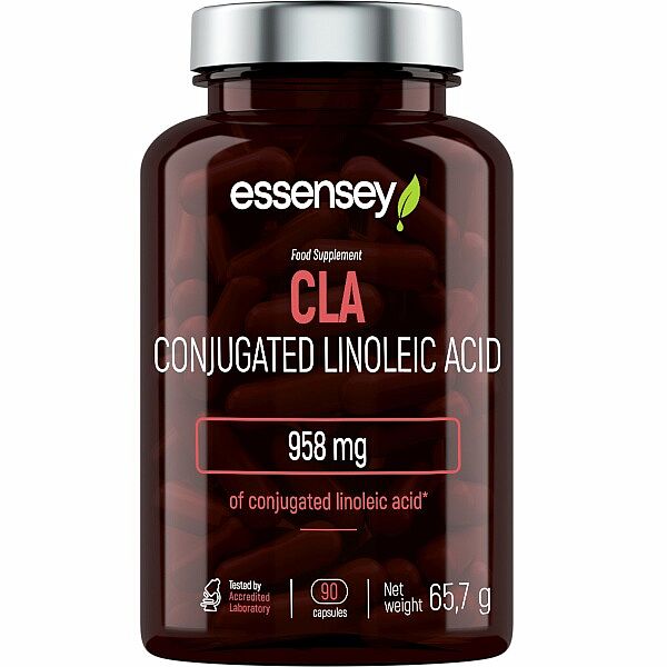 ESSENSEY CLA. Výživový doplnok. Výrobok v kapsuliach s obsahom konjugovanej kyseliny linolovej 80%, ktorá sa prirodzene vyskytuje v malom množstve v potravinách .