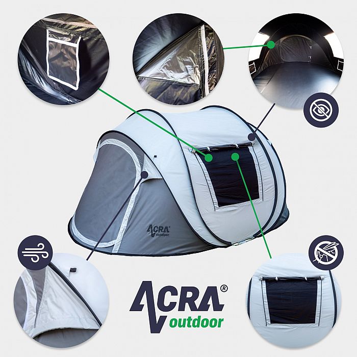 Acra Outdoor ST31 samorozkladací stan pre 2-3 osoby/2seconds - strieborný so zatmavením