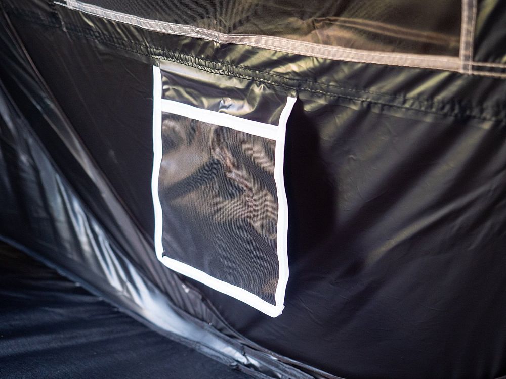 - Vnútorné čierne zatienenie: Čierna farba vnútorného stanu minimalizuje prenikanie svetla a zaisťuje tak nerušený spánok aj v skorých ranných hodinách.