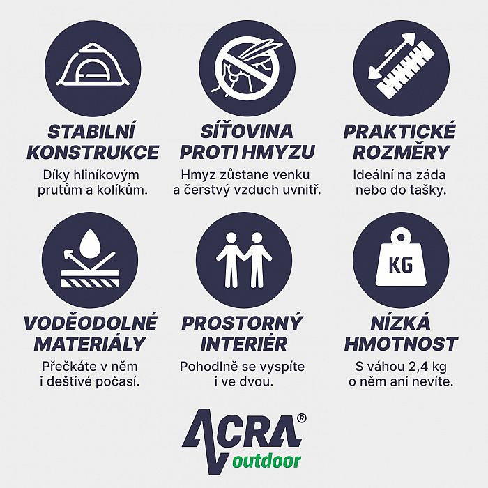 Acra Outdoor ST32 je ideálnou voľbou pre všetkých turistov, ktorí si cenia nízku váhu, kompaktné rozmery, rýchle zostavenie a odolnú konštrukciu. Stan je vhodný pre pešiu turistiku, cyklistiku aj kempovanie a zaručene vám spríjemní pobyt v prírode.