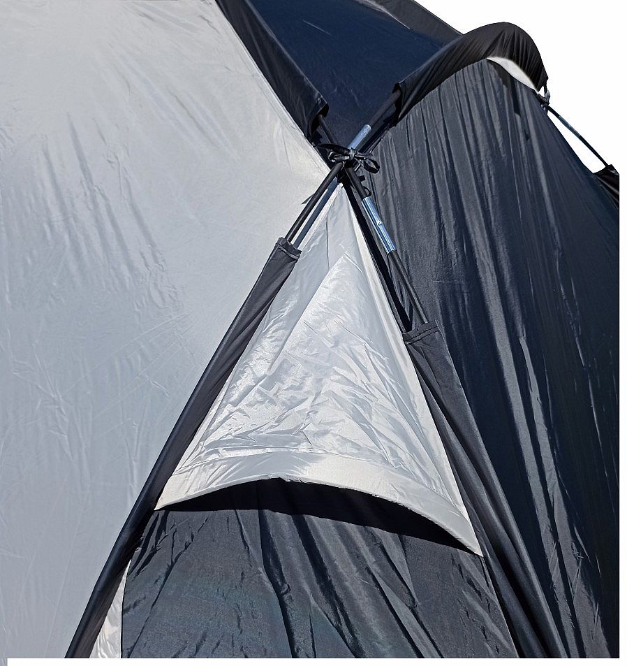 Rodinný stan vhodný na kempovanie aj v nepriaznivom počasí. Predsieň spolu so slnečným prístreškom vytvárajú dostatok vnútorného priestoru aj v prípade nepriaznivého počasia. Aj pri svojej veľkosti je veľmi skladný a s pomocou sklolaminátových prútov postavenie nezaberie viac ako 15 minút.