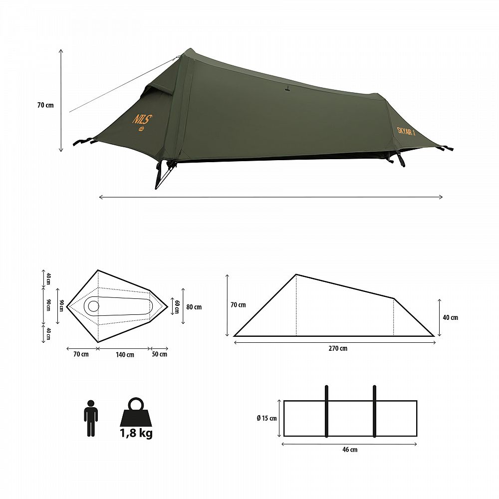 Popis: Ľahký stan NILS Camp NC2501 Skyair 1 zelený