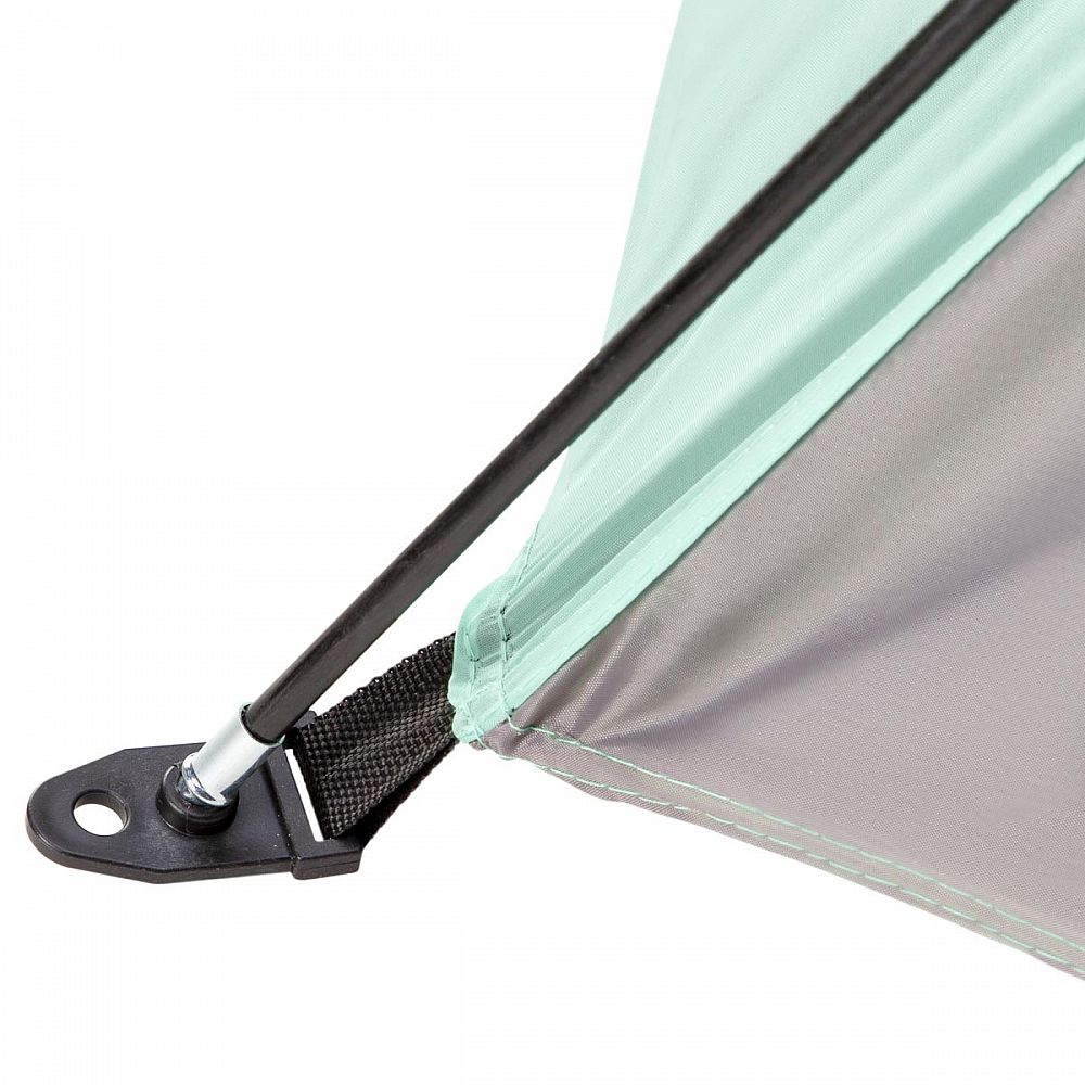 Stan je dodávaný zložený v taške opatrenej uchom pre ľahké prenášanie. Po vytiahnutí z tašky sa stan postaví za pomoci troch sklo-laminátových tyčí, ktoré sa prevlečú tunelami na polyesterovom tropici. Podlaha s rozmermi 105 x 210 cm a výška 110 cm umožňujú úkryt pred slnkom ako deťom, tak rodičom. Použitý materiál odolá aj malej, dažďovej prehánke.