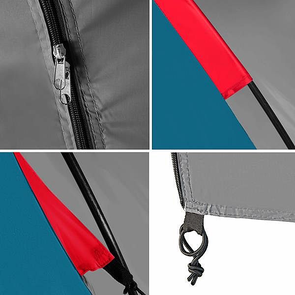 Navyše je stan vybavený štyrmi vnútornými vreckami, kam schováte svoje veci, a dvoma úchytmi pod stropom, vďaka ktorým môžete zavesiť lampu.