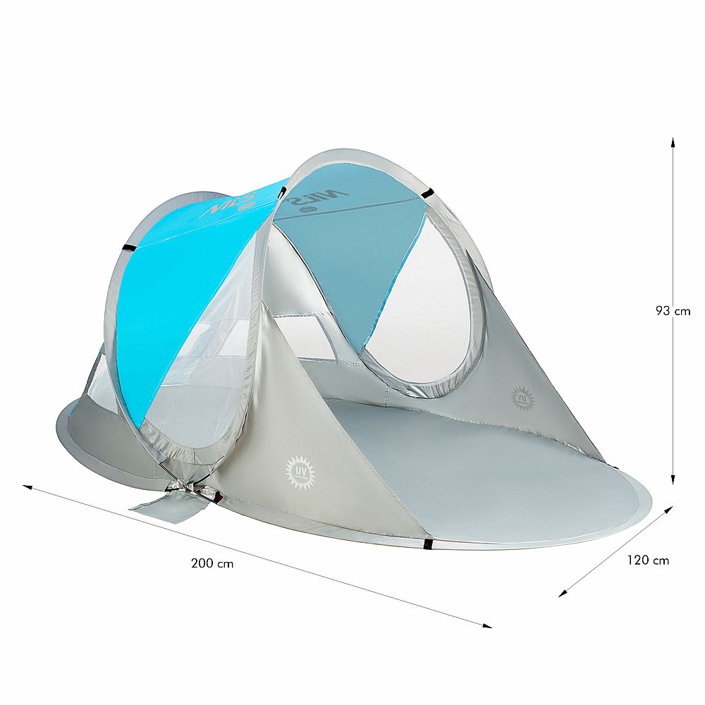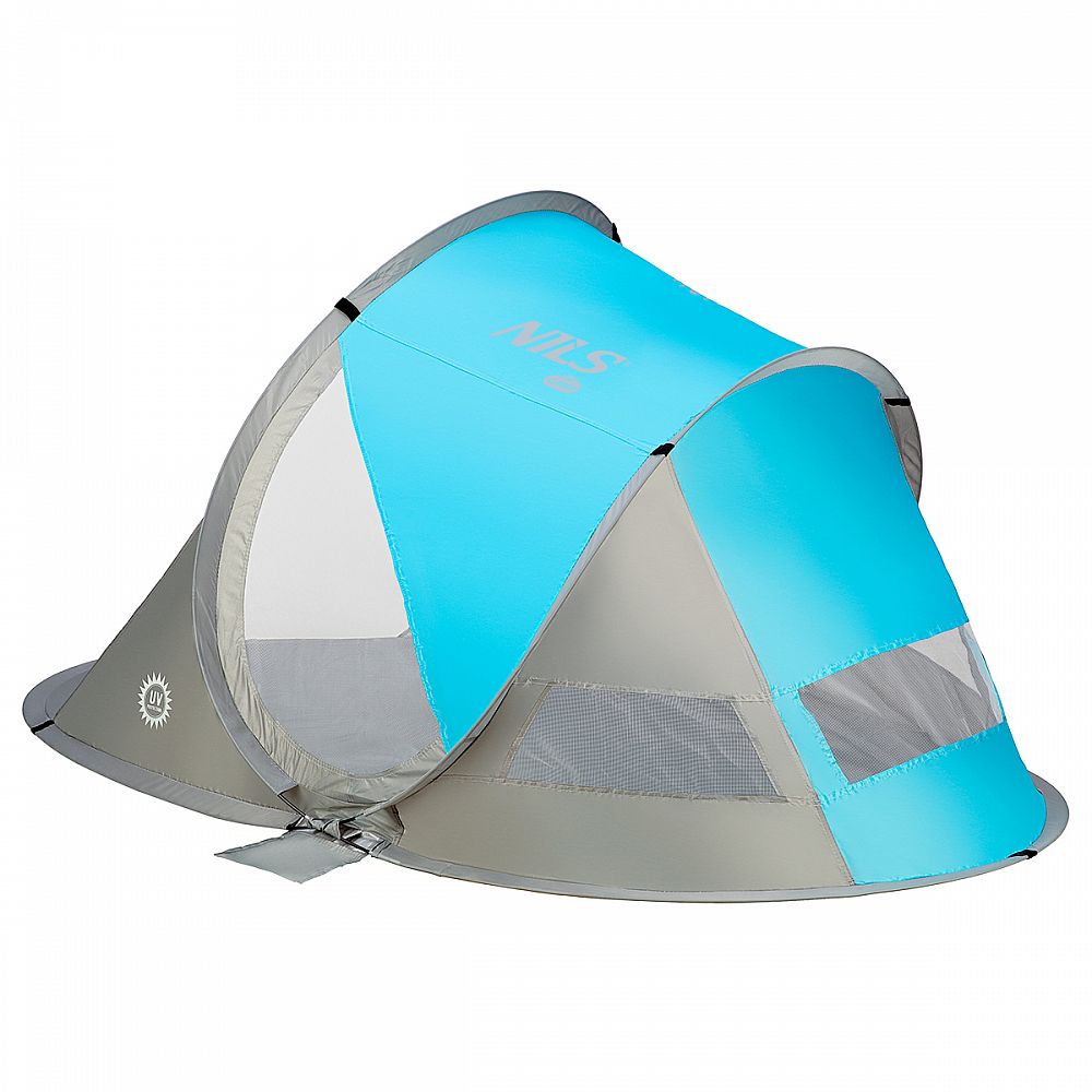 Popis: Samorozkladací plážový stan NILS Camp NC3143 BIG modrý