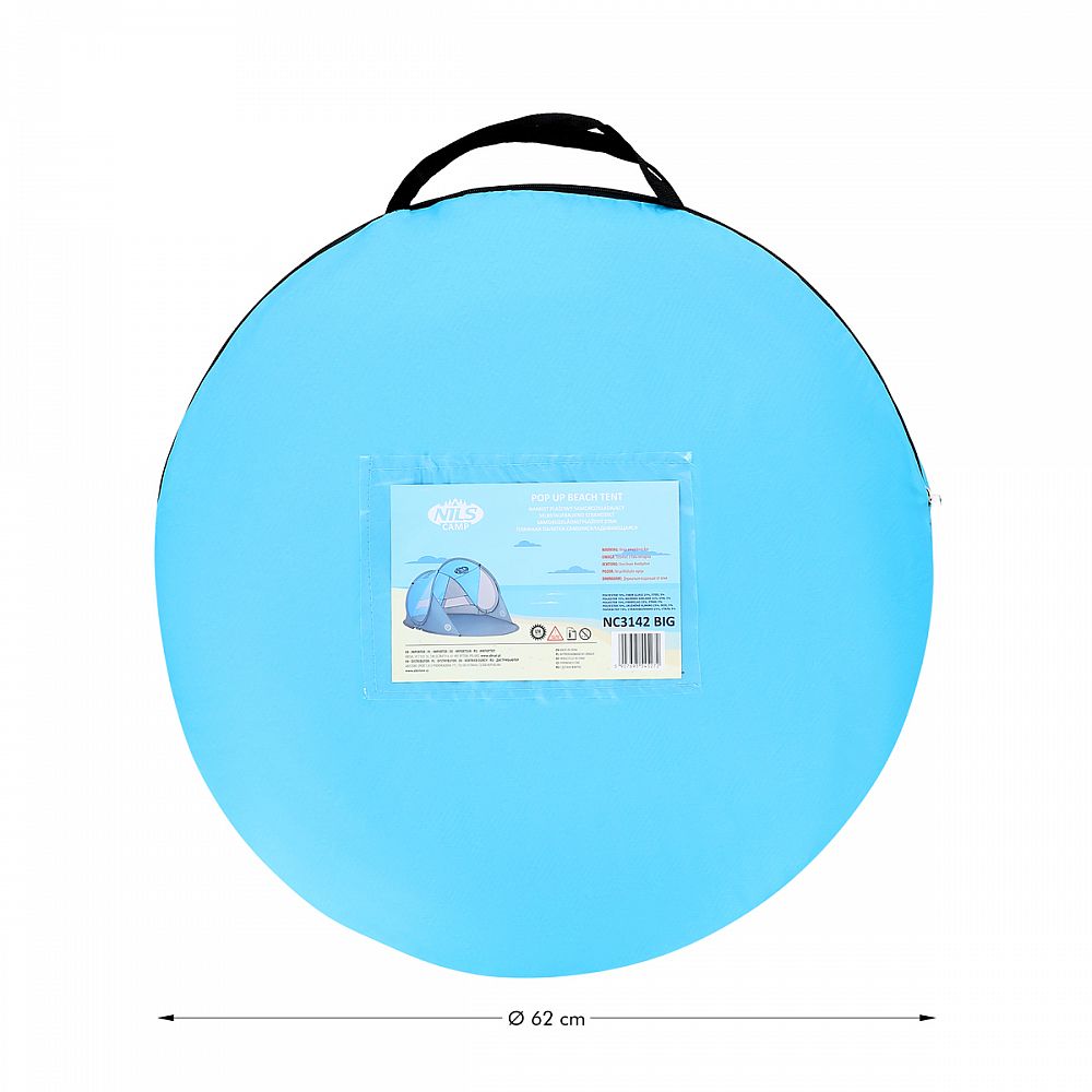 Plážový stan NILS Camp NC3143 BIG využijete nielen počas dovolenky pri mori, ale aj na verejnom kúpalisku, alebo pri bazéne na záhrade. Stan NC3143 sa okamžite rozloží, je odolný a funkčný, ale predovšetkým poskytne účinnú ochranu pred slnečnými lúčmi, poskytne tieň a zároveň úkryt pred vetrom.