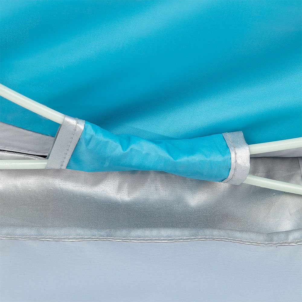 Plážový stan NILS Camp NC3173 využijete nielen počas dovolenky pri mori, ale aj na verejnom kúpalisku, alebo pri bazéne na záhrade. Hlavnou funkciou plážového stanu je ochrana pred slnečnými lúčmi a škodlivým UV žiarením. Model NC3173 odrazí až 96% UV žiarenia. Stan je dodávaný zložený v kruhovej taške opatrenej uchom pre ľahké prenášanie. Po vytiahnutí z tašky sa stan automaticky rozloží. Na zloženie sa použije jednoduché gesto a stan sa schová opäť do tašky. Podlaha s rozmermi 140 x 110 cm a výška 110 cm umožňujú úkryt pred slnkom ako deťom, tak rodičom. Podporná konštrukcia prístrešku je tvorená sklo-laminátovou tyčou. Na ňu je navlečená polyesterová plachta. Použitý materiál odolá aj malej, dažďovej prehánke.