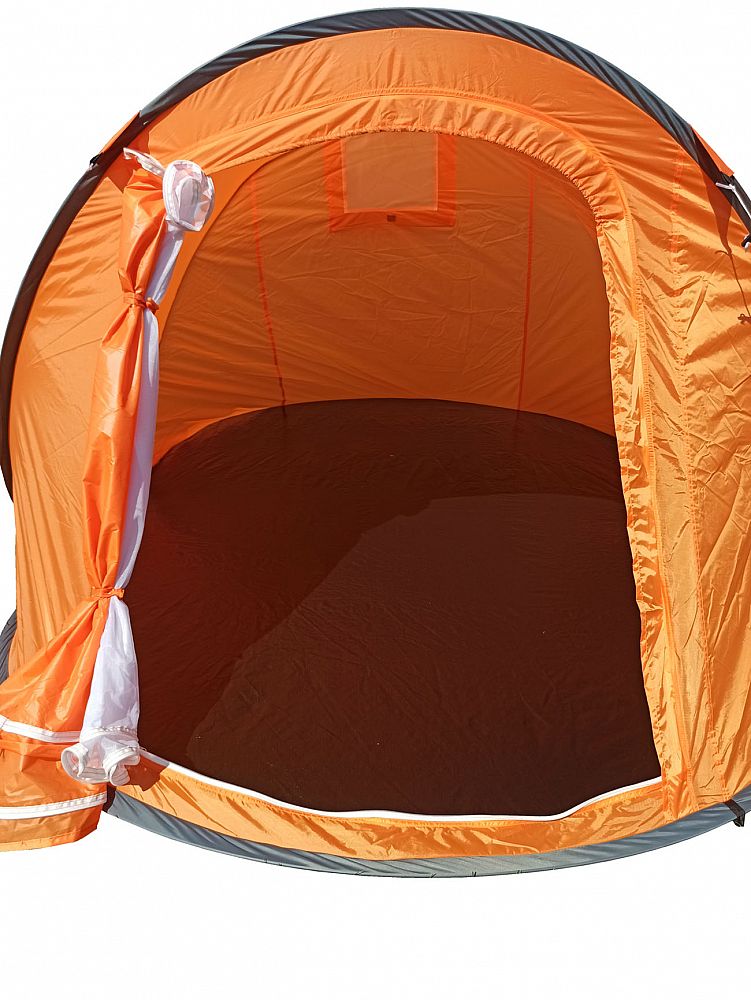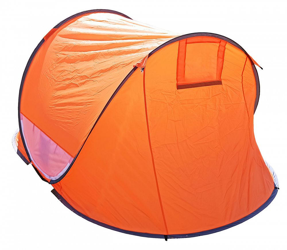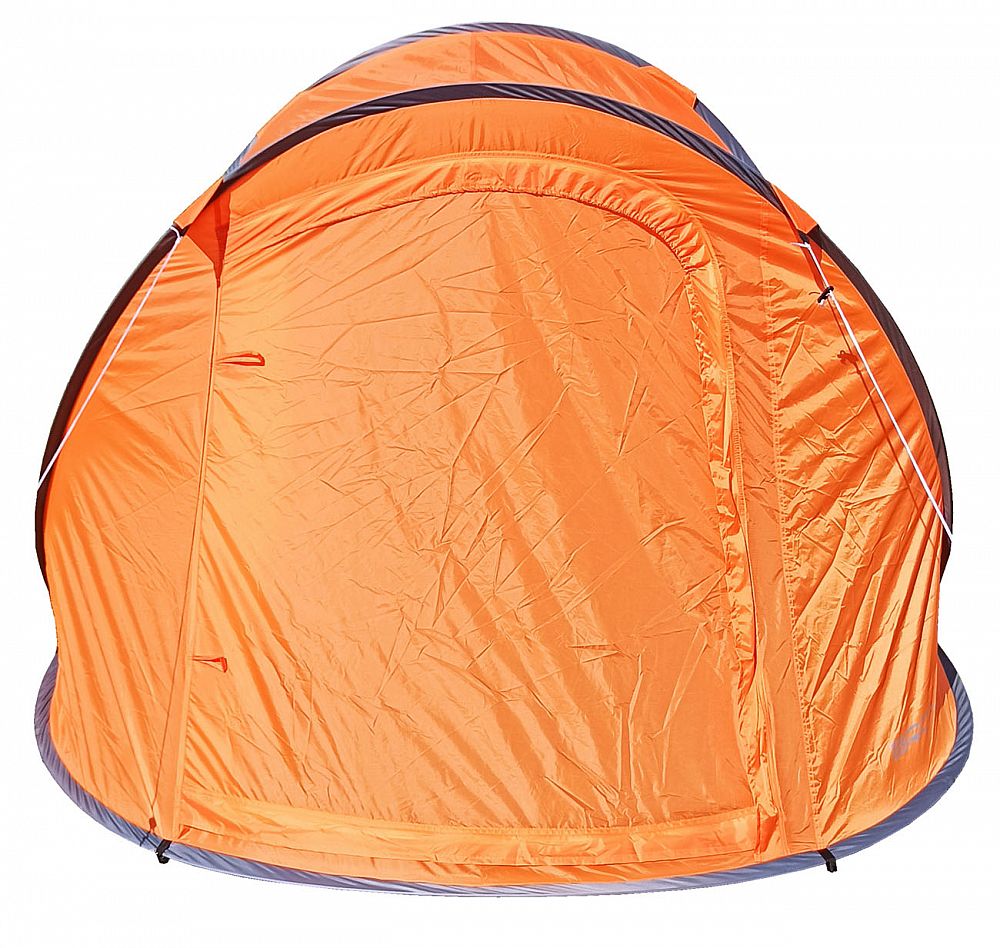 STAN SAMOSTAVECÍ pre 3 osoby. Jedná sa o veľmi skladný a jednoducho postaviteľný stan. Navlieknuté sklolaminátové prúty po vybratí z obalu stan kompletne postavia. Potom už len stačí stan upevniť kolíky k zemi a dopnúť plášť stanu kotviacimi šnúrami dookola.