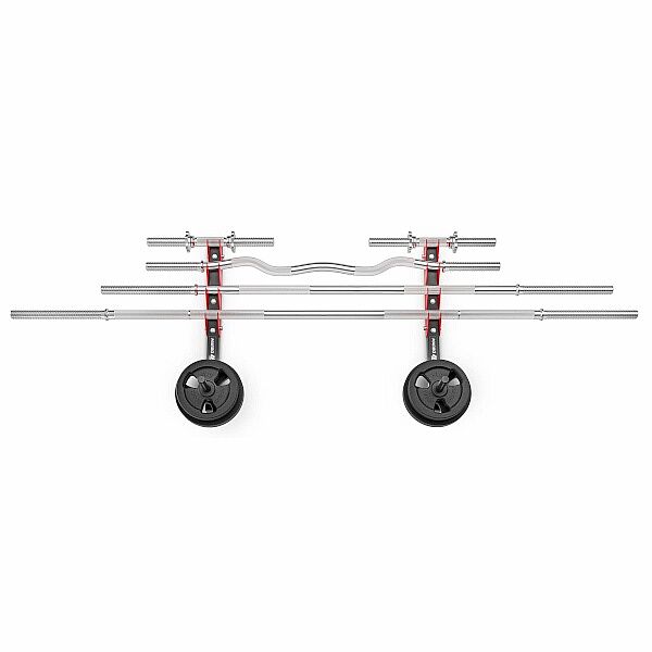 Konštrukčne ide o 2 kusy oceľových profilov určených na montáž na stenu, kedy sa každý profil pripevní pomocou 4 kotiev. Kotviaci materiál nie je súčasťou dodávky a je nutné zvoliť vhodný druh podľa materiálu múru. Po montáži získame 4 páry držiakov na osi a 2 tŕne na odkladanie závaží. Do držiaka teda môžeme odložiť až 4 obojručné osi alebo až 8 jednoručných hriadeľov. Tŕne na odkladanie závažia majú dĺžku 21 centimetrov a priemer 2,5 centimetra.