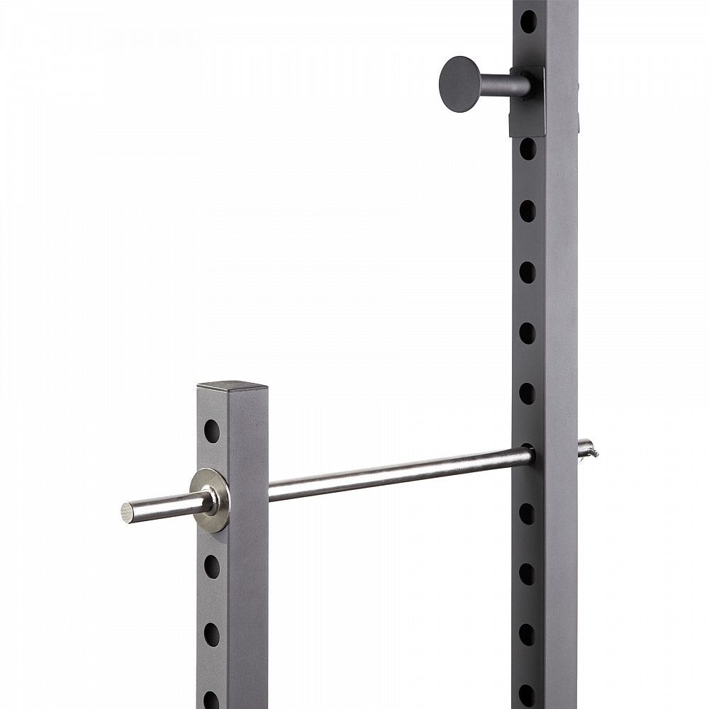 Power Rack PWS20 je vybavený hrazdou pre tréning príťahov. Okrem toho je stojan vybavený výškovo nastaviteľnými držiakmi činky, ktoré je možné prispôsobiť v 16 rôznych polohách. To umožňuje presné nastavenie výšky, čo je nevyhnutné pre cviky s činkou, ako sú drepy a benchpress.