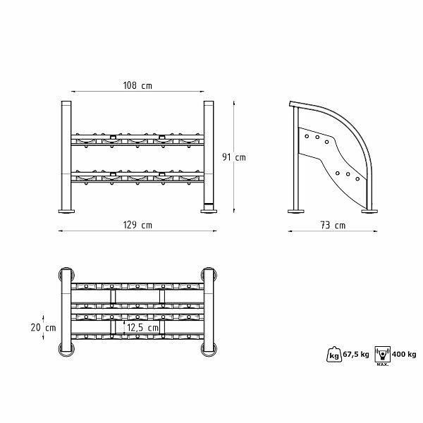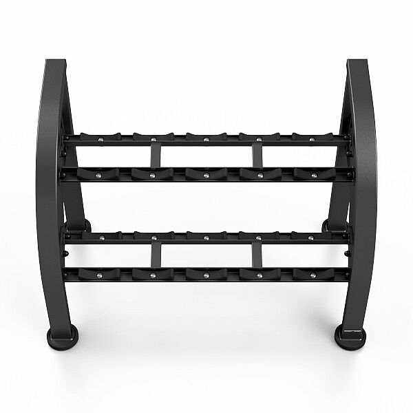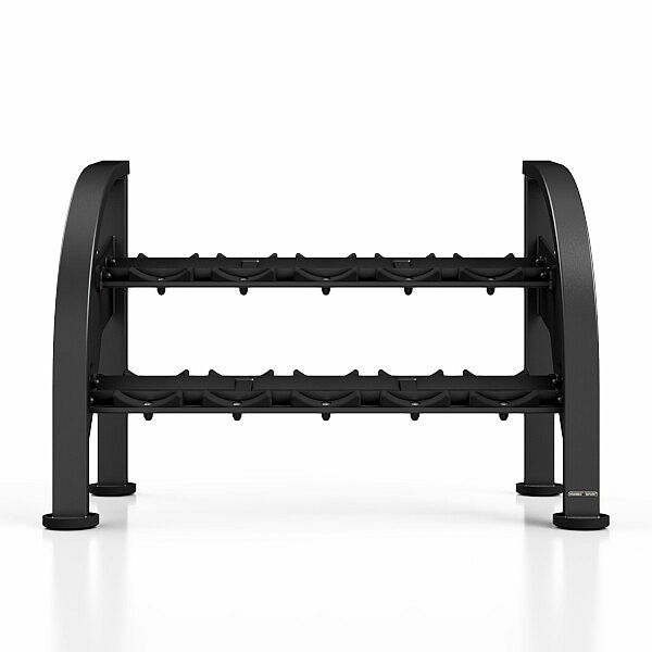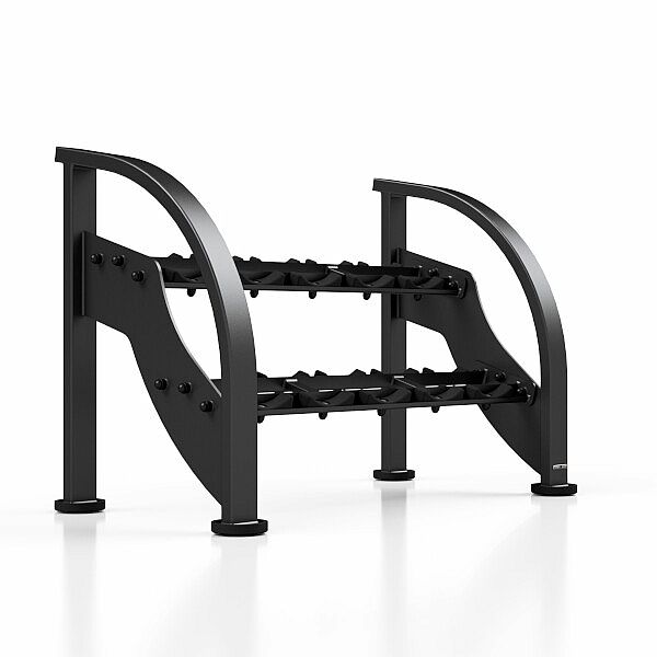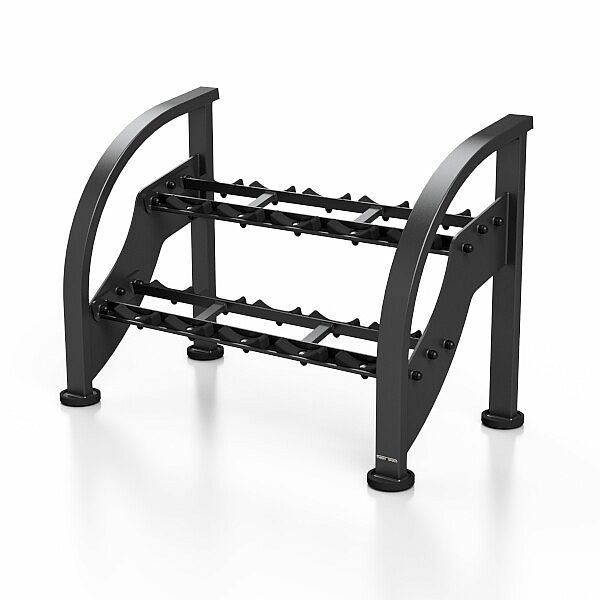 Profesionálny stojan na činky MARBO MF-S002 je jedným zo základných prvkov každej posilňovne, ktorý šetrí miesto, pomáha udržovať poriadok a zlepšuje prehľadnosť Vašich činiek. Stojan je modulárny - je možné ich dodať po jednotlivých kusoch (129 cm), ktoré je možné spojiť do ľubovoľnej dĺžky. Konštrukciu stojana tvoria oceľové profily 100 x 50 a 100 x 40 mm, to zaručuje maximálnu nosnosť 400 kg na modul. MF-S002 má 2 police, tie sú opatrené ogumovaním na ktoré uložíte 5 párov činiek s minimálnou dĺžkou úchopu 125 mm a maximálnym priemerom 210 mm.