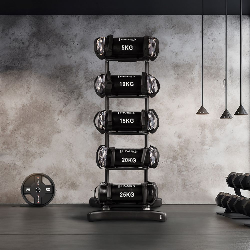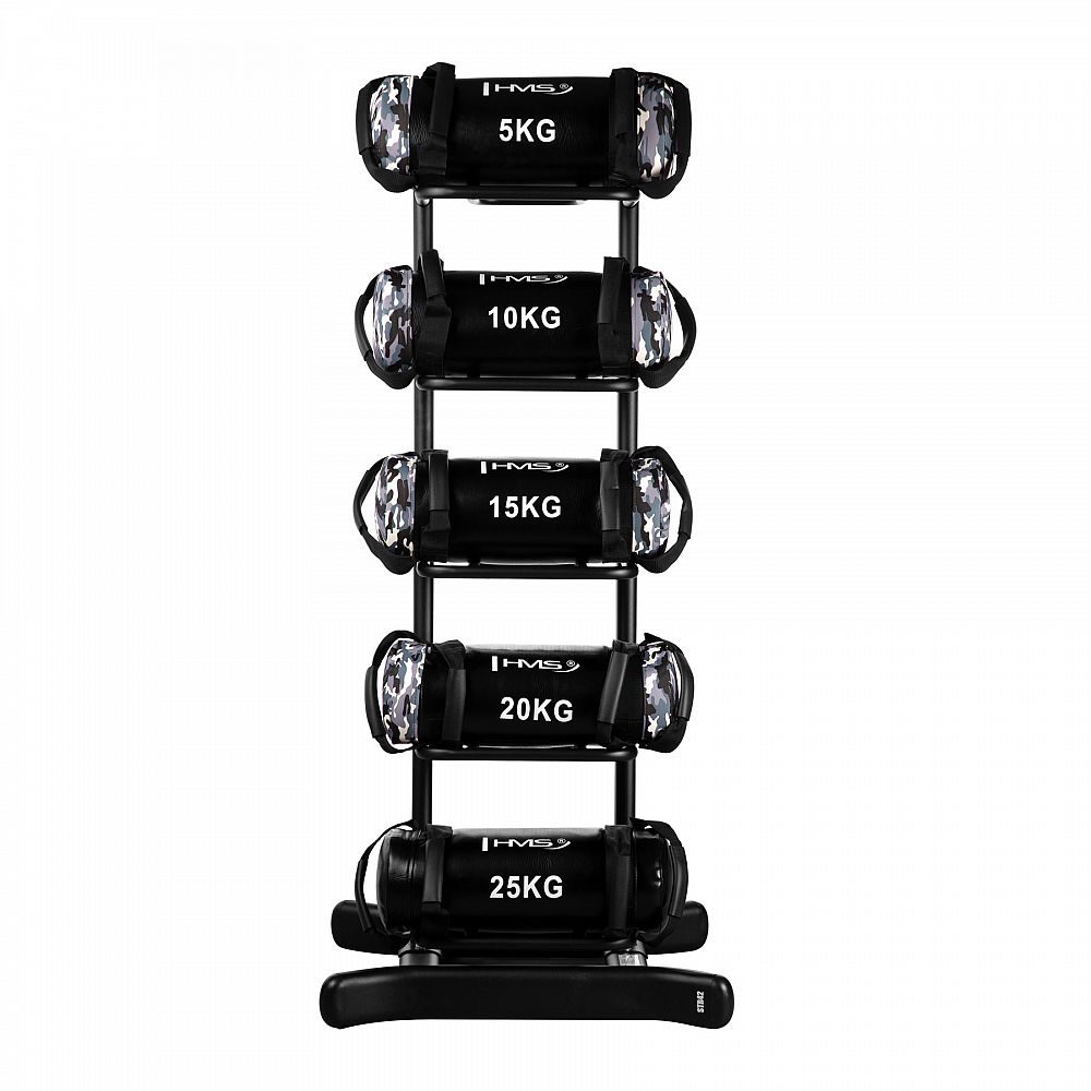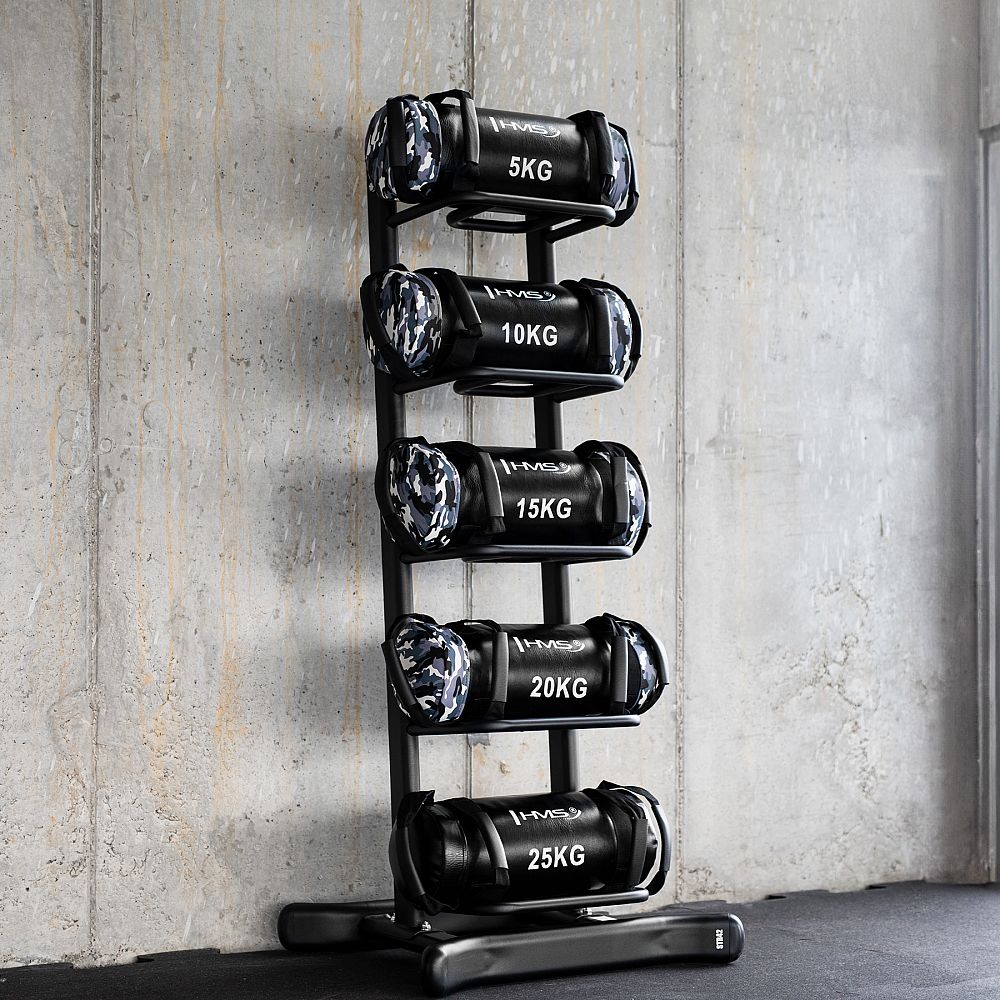 STR42 je pevný a stabilný stojan, ktorý umožňuje uloženie 5 power bagov rôznych hmotností, čím zaisťuje poriadok a úsporu miesta. Vďaka svojej vysokej konštrukcii je ideálnou voľbou pre profesionálne posilňovne, fitness centrá aj domáce tréningové zóny.