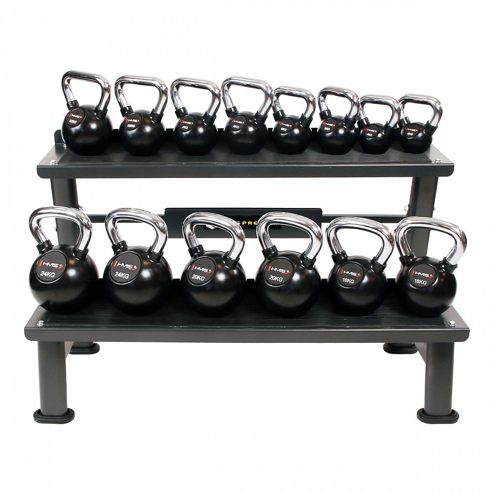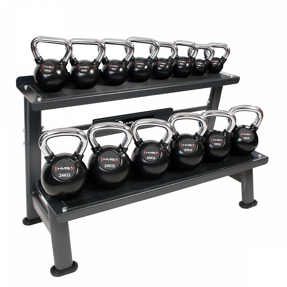 Stojan HMS Premium STR09 je navrhnutý pre ukladanie Kettlebell. Stojan disponuje dvoma úrovňami. Každé poschodie je opatrené gumou a jeho odkladacia plocha je 108 x 22,5 cm. Maximálna kapacita stojana je 12 - 16 kettlebelů. STR09 je vyrobený s ohľadom na bezpečie užívateľov i odkladaného náradia.