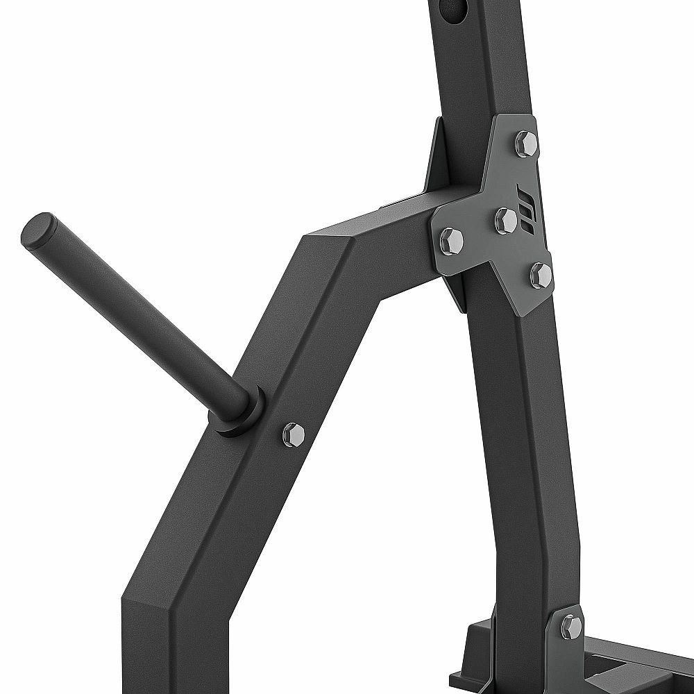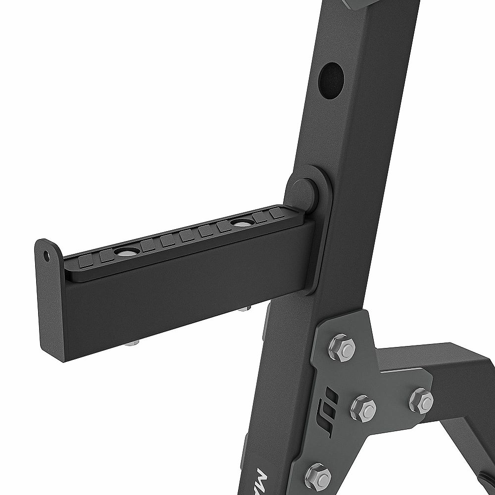 Háky na činku sú tvarované tak, aby umožnili bezpečné a pohodlné odloženie. Činku môžete odložiť ako po dokončení série, tak aj počas cvičenia, kedy je potrebná dodatočná opora. Vďaka 6 úrovniam je možné ľahko prispôsobiť výšku štartovej pozície, pričom optimálne rozostupy medzi hákmi zaručujú komfort pri zdvíhaní a odkladaní činky.