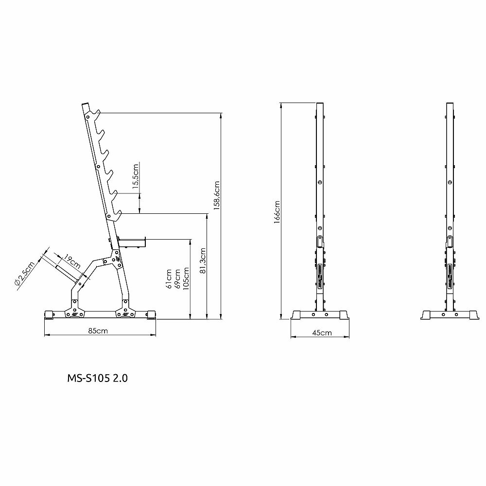 Stojany MS-S105 2.0 je možné umiestniť na akýkoľvek povrch – dlažbu, parkety alebo laminátovú podlahu. Gumové nôžky zabránia poškriabaniu podlahy a zároveň zaistia stabilitu konštrukcie, takže sa počas cvičenia nebude posúvať.