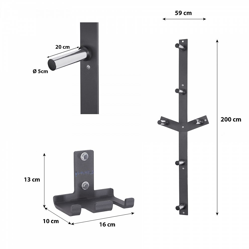 Pokiaľ hľadáte efektívny spôsob uloženia osí a závaží, je pre vás táto sada od spoločnosti HMS ideálnym riešením. Nástenný stojan na osi a stojan na záťaž vám ušetrí veľa miesta vo vašom tréningovom priestore.