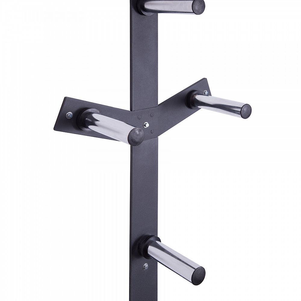 S držiakom HMS STR29 taktiež získate priestor a zároveň vytvoríte jedinečné a prehľadné usporiadanie zavesených kotúčov. Držiak od spoločnosti HMS je vyrobený z vysoko kvalitnej ocele, ktorá zaisťuje pevnosť a odolnosť. Na stojane je šesť kolíkov s priemerom 5 cm a dĺžkou 20 cm, na ktoré umiestnite svoje kotúče. Kolíky sú rozmiestnené tak, aby bola zaistená stabilita a bezpečnosť závažia.