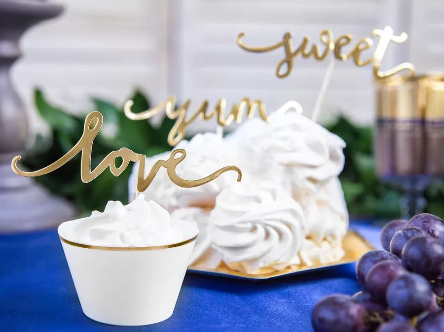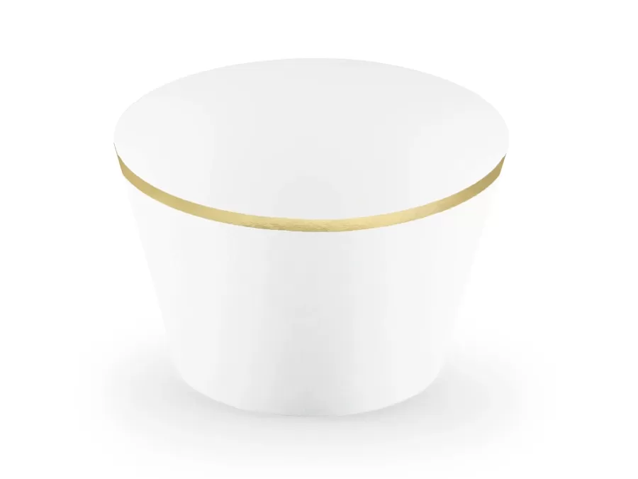 Košíček na cupcake bielej farby so zlatým metalickým okrajom,