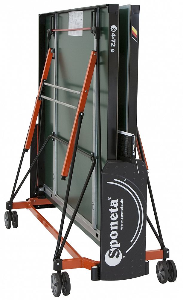 Stôl je možné zložiť bez toho, aby bolo nutné demontovať držiak na sieťku so sieťkou. Výhodou tohto modelu je možnosť sklápania dosiek len z jednej strany a nie je potreba stôl obchádzať alebo mať k sebe ešte ďalšiu pomoc.