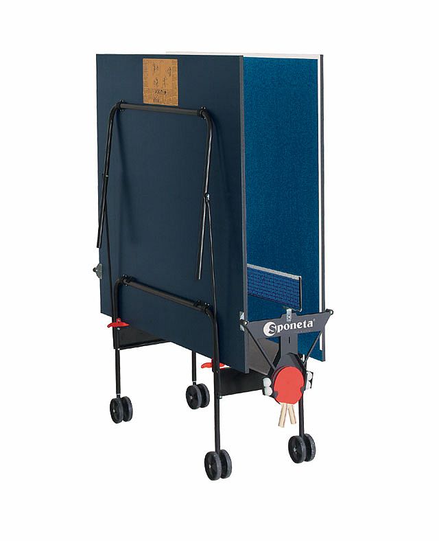 Stôl na stolný tenis Sponeta S1-13i s pojazdom, sieťka, držiak na sieťku je súčasťou vybavenia stola.