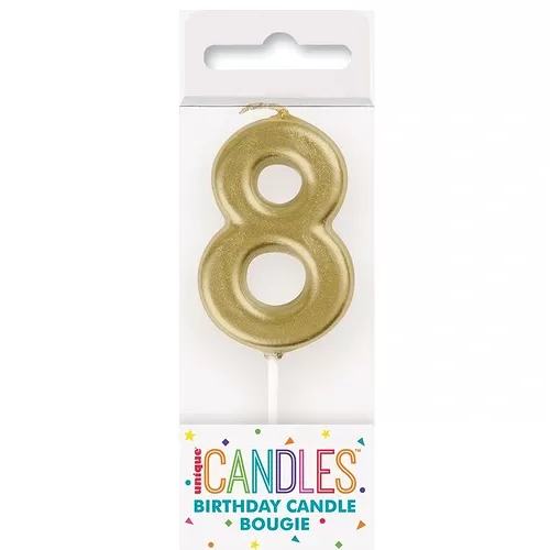 Sviečka v tvare číslice 8 v zlatej farbe, 5cm veľké.