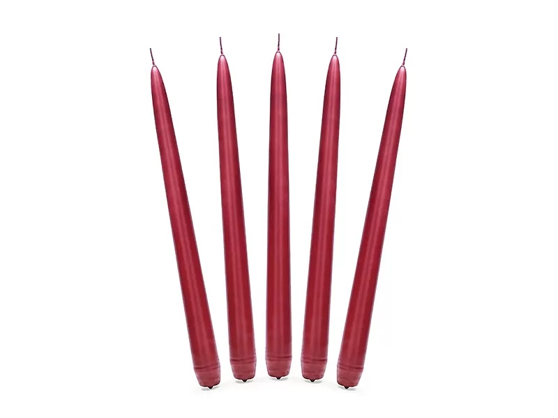 Dlhá sviečka v tmavo červenej farbe, dĺžka je 24cm. Dĺžka horenia je cca 5 hodín.
