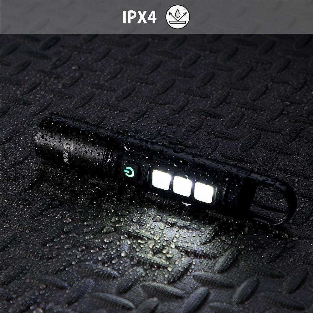 Vodeodolnosť IPX4 zaisťuje, že dážď alebo striekajúca voda nebude rušiť prevádzku svietidla. A pomocou závesného pútka ho ľahko pripevníte k batohu, opasku alebo stanu, pričom baterku využijete ako nočné svetlo.