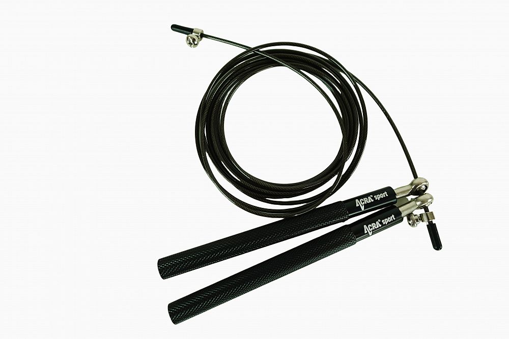 Švihadlo Acra čierne Skipy je vynikajúcou cvičebnou pomôckou na zlepšenie celkovej kondície. Rukoväte, ktoré sú vyrobené z pevného hliníka, majú protišmykový povrch, čo zaisťuje bezpečné a pohodlné uchytenie. Kovové otočné ložiská s uťahovacou skrutkou umožňujú jednoduché nastavenie dĺžky lanka podľa potreby. Samotné lanko má oceľové jadro chránené gumovou bužírkou, a je zakončené gumovými odnímateľnými puzdrami, ktoré umožňujú presné skrátenie švihadla.