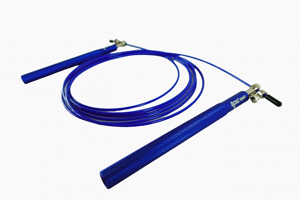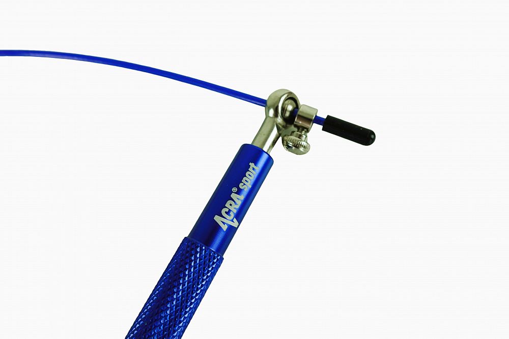 Švihadlo Acra modré Skipy je vynikajúcou cvičebnou pomôckou na zlepšenie celkovej kondície. Rukoväte, ktoré sú vyrobené z pevného hliníka, majú protišmykový povrch, čo zaisťuje bezpečné a pohodlné uchytenie. Kovové otočné ložiská s uťahovacou skrutkou umožňujú jednoduché nastavenie dĺžky lanka podľa potreby. Samotné lanko má oceľové jadro chránené gumovou bužírkou, a je zakončené gumovými odnímateľnými puzdrami, ktoré umožňujú presné skrátenie švihadla.