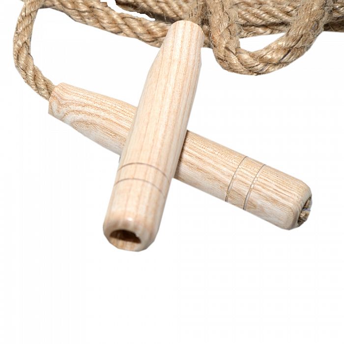 Švihadlo je vyrobené z prírodnej juty a má zosilnený stred. Vyššia hmotnosť tohto stredu pomáha pri rotácii a uľahčuje tak deťom nacvičenie správneho preskoku. Rukoväte sú vyrobené z dreva a sú na dotyk veľmi príjemné a prispievajú k pohodliu počas cvičenia.