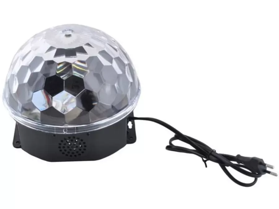 LED disco koule je ideální pro diskotéky, bary, taneční kluby a další zařízení. Skvěle jí využijete také na domácích párty a oslavách. Kouli je možno přimontovat na stěnu, nebo strop pomocí stojánku, který je součástí balení. Přívodní šňůra má délku 105 cm. V balení se nachází také dálkový ovladač, který umožňuje měnit barevné nastavení, úroveň hlasitosti, vypínání, zapínání a další. Disco koule má dva druhy nastavení:1. Automatický – blikající nebo jiné obrazce dle nastavení2. Sound – obrazce jsou generovány dle rytmu hudby Barvy světla: Červená, zelená, modráPort USB: AnoČtečka SD karet: Ano, micro SDZabudovaný reproduktor: Ano, možnost reprodukce hudby z micro SD karty, USB diskuSystém chlazení: Ano, pasivní